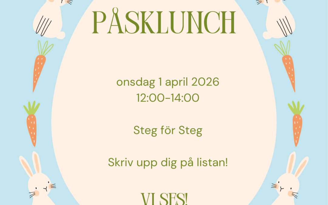 Igår onsdagen den 1 april hade vi på Steg för Steg påsk lunch för hela verksamheten. Vi brukar fira högtider såsom Påsk och Jul, samt ha en sommarlunch. Håll utkik på våra sociala medier eller här på stegforsteg.nu för att anmäla dig till nästa gång.
